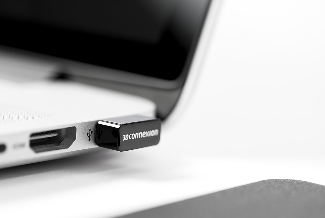 Der Universal Receiver ist die perfekte Verbindung zwischen Ihrem Computer und bis zu fünf kabellosen 3Dconnexion Geräten. Mit dem kleinen USB-Receiver stellen Sie schnell und einfach stabile Verbindungen zu jedem kabellosen 3Dconnexion Gerät her.