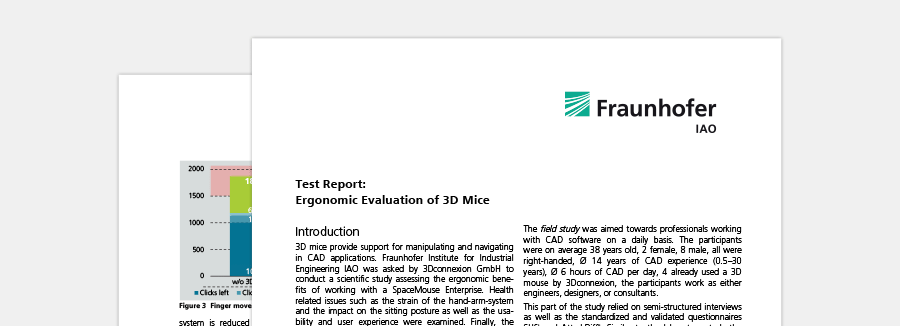 Working with two hands – with a 3D mouse in your left hand and a conventional mouse in your right hand – helps you to maintain an upright posture while seated. Both arms lie on the desk in parallel. The ergonomically shaped hand rest of the 3D mouse also ensures that your wrist remains straight. After a short period of getting used to this way of working, your hand will enjoy a comfortable and cramp-free position. This prevents you from having to overly contort your hand or arm.