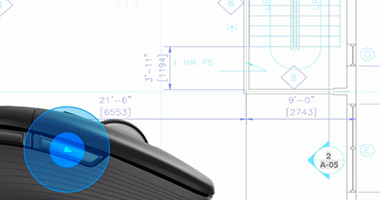The QuickZoom feature is easy to use; simply press the thumb buttons to zoom in and out of the cursor’s position in your drawing or 3D model; fine tune the zoom level by continuing to press the corresponding button.