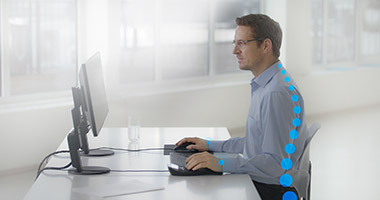 Die beidhändige Arbeitsweise mit einer 3D-Maus in der linken und einer klassischen Maus in der rechten Hand fördert eine aufrechte Sitzhaltung. Beide Arme liegen parallel auf dem Schreibtisch. Die ergonomisch geformte Handauflage der 3D-Maus sorgt zudem für ein gerades Handgelenk. Nach kurzer Einarbeitungszeit nehmen Sie eine bequeme und unverkrampfte Handhaltung ein. Diese verhindert ein übermäßiges Verdrehen der Hand bzw. des Arms.