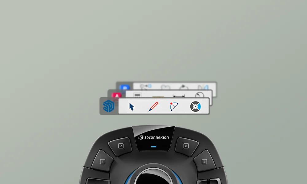直接在设备上查找最常用的软件命令。所有 3Dconnexion 设备都能自动识别您正在使用的软件,并在每个应用程序中提供预设命令。根据您的工作流程需求自定义控件