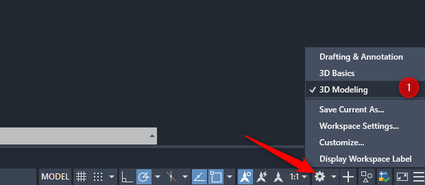 - Expand the „Workspace Switching“ menu and activate „3D Modelling“