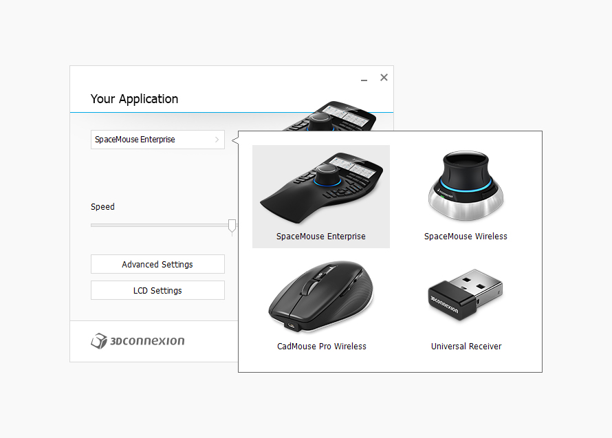El software 3DxWare 10 permite a los usuarios personalizar y optimizar SpaceMouse Enterprise para obtener el máximo rendimiento. Asigne fácilmente comandos de aplicación a botones para cada aplicación o entorno (una pieza, conjunto, dibujo) y adapte otros ajustes útiles a sus necesidades. En la interfaz clara e intuitiva de 3DxWare 10, los ajustes más útiles están a un solo clic de distancia.