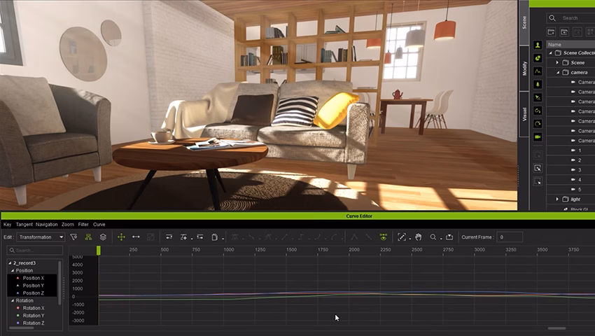 Experience intuitive and smooth directing: record the camera movement path to a chosen camera track, easily switch between cameras, replay and edit the timeline.
