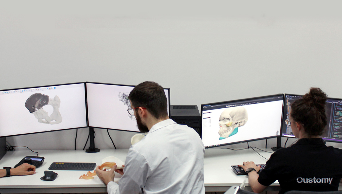PS: My name is Paweł Skadłubowicz and I am the majority shareholder and Research and Development Manager in Smart Labs Sp. z o.o., which owns the Customy brand. Our company is involved in the creation of personalized solutions for cranio-maxillofacial, orthopaedic and reconstructive surgery. The solutions that we create are made for individual patients, and can be implants and surgical guides, or single-use tools for precise guidance of surgical instruments such as saws or drills during surgery on the patient. Our surgical guides allow a virtual surgery plan prepared together with the doctor to be transferred to the operating theatre. Implants and guides are used to restore the patient’s full functionality after cancer or extensive injuries, for example from road accidents. In the case of cancer, a patient could have a bone fragment missing, causing not only problems in their daily functioning, but also problems of aesthetic nature. At the moment there is no standard solution on the market which would allow the reconstruction of bone in cases like this. That’s where we come in.