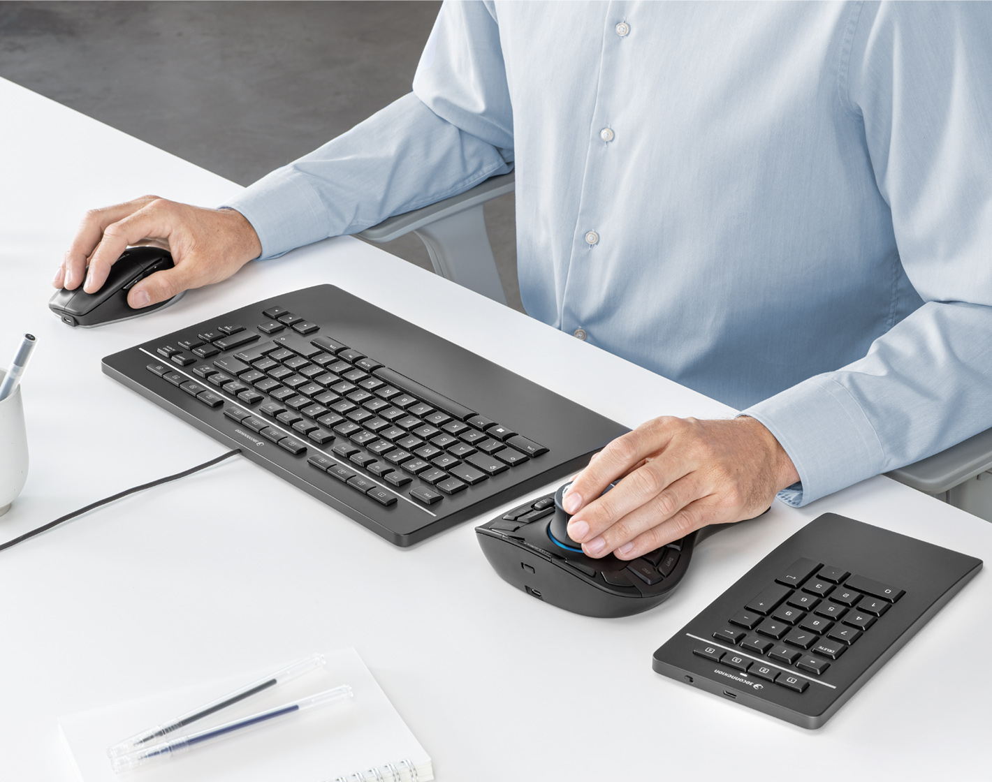 The wired keyboard and encrypted connection to the numpad ensure security. An embedded hub connects all your 3Dconnexion wireless devices.