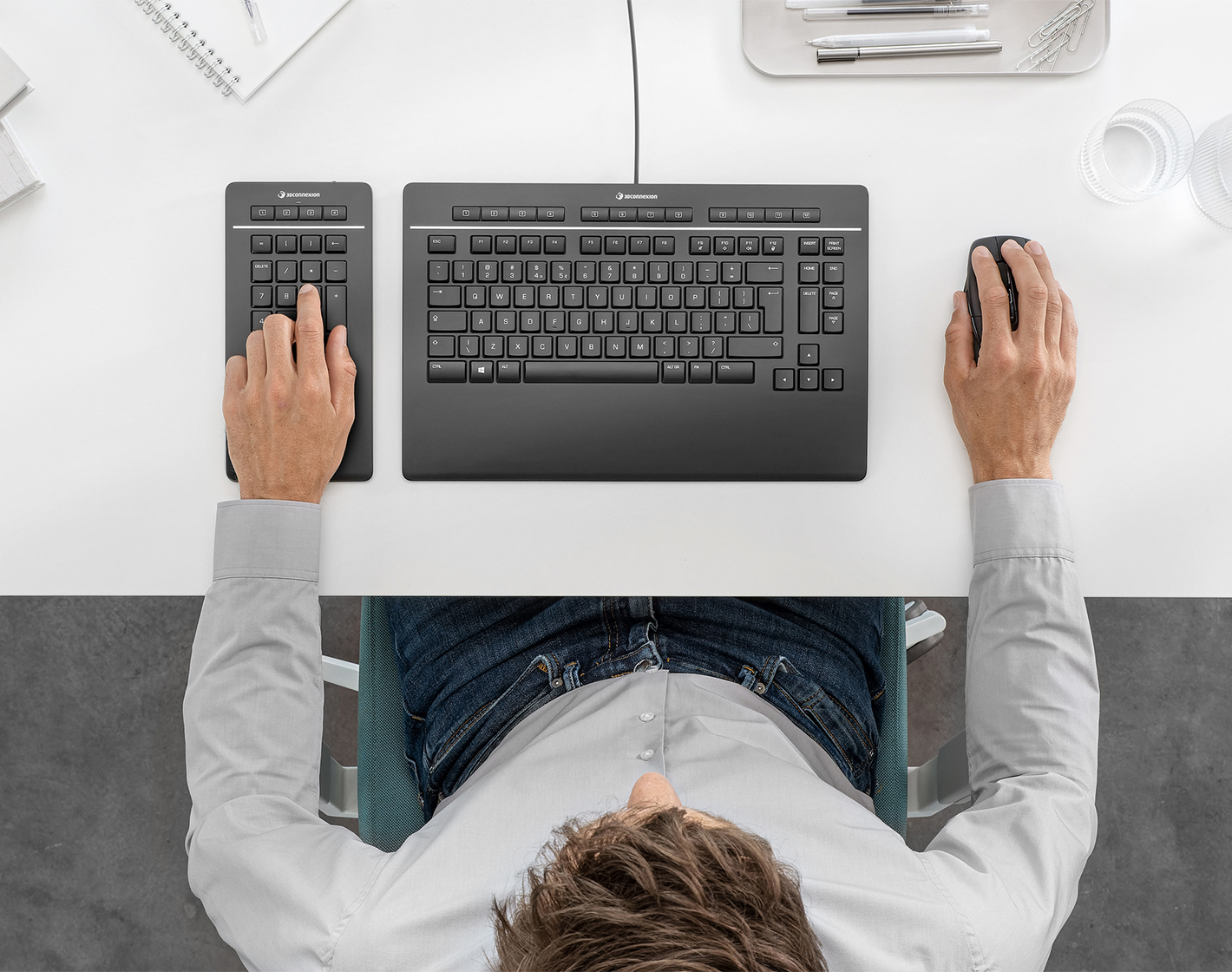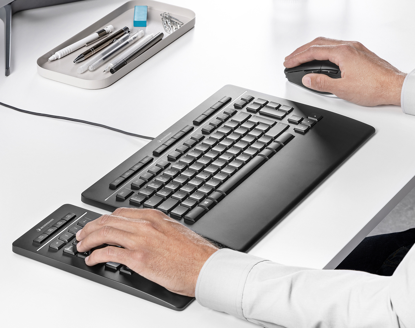 A keyboard with detached numpad engineered to help you create digital 3D models and professional designs. Its compact width enables a better position of your mouse or pen resulting in a more natural and comfortable posture. 3Dconnexion keys automatically provide access to app-specific commands you need most – saving time and keeping you focused.