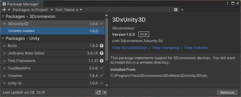 After installing 3DxWare and including the Unity3D plugin, install the plugin from the installation directory: