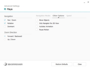 Pause Motion: Disables SpaceMouse navigation. When activated, the movement of the SpaceMouse cap will have no effect in the program.