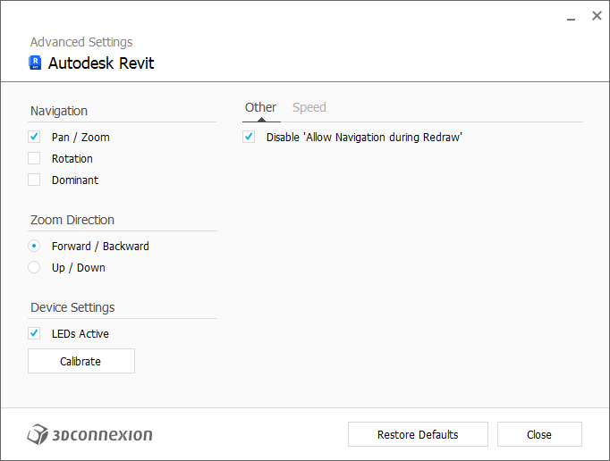 Disable “Allow navigation during Redraw”: Marking this checkbox will disable the “Allow Navigation during Redraw” option in Revit, leading to improved SpaceMouse performance, especially when navigating in large models.