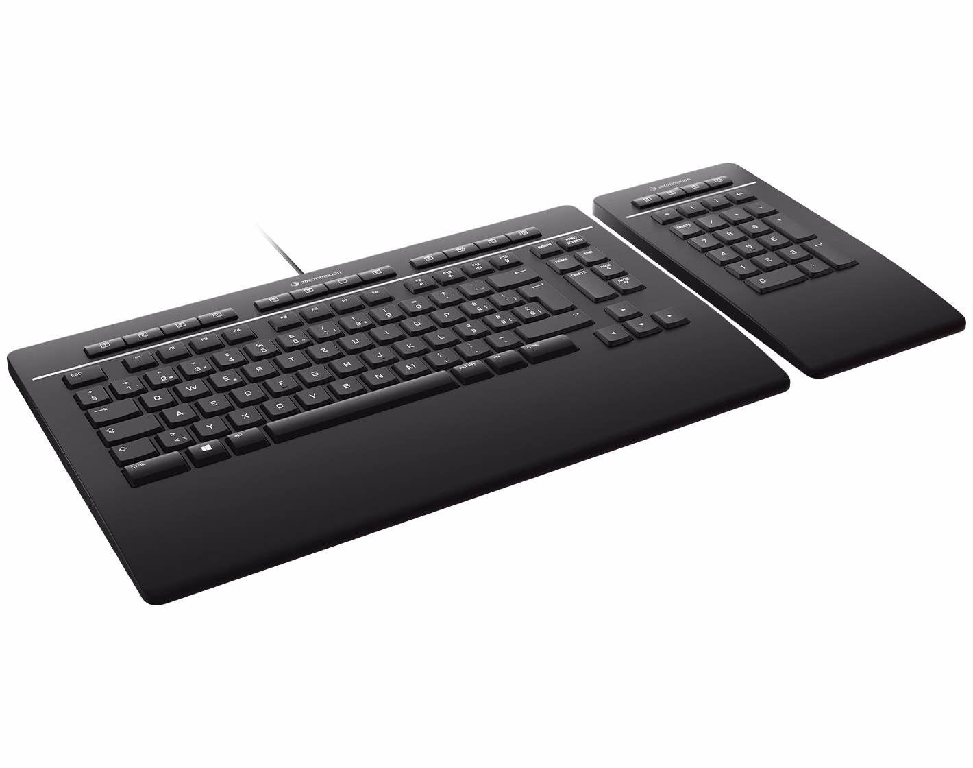 A keyboard with detached numpad engineered to help you create digital 3D models and professional designs. Its compact width enables a better position of your mouse or pen resulting in a more natural and comfortable posture. 3Dconnexion keys automatically provide access to app-specific commands you need most – saving time and keeping you focused.