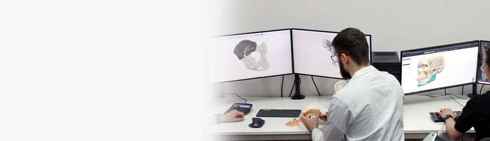 We start by planning the resection of the part of the bone affected by the tumour and then we discuss with the doctor how to reconstruct it with the help of an implant or autograft. If it is an implant, the doctor informs us how it should fit into the patient’s bone. Each implant is designed taking into account the patient’s individual anatomy so that not just lost functionality is restored, but patients regain their previous appearance. An autograft is made from a bone from the same patient, usually a fragment of fibula. While it is impossible to function without a jaw bone, you can function with a bit of fibula missing. We provide doctors with the tools (surgical guides, that they use to cut the bone properly. Thanks to individual surgical templates (guides) which are custom-made for specific patients, the doctor knows exactly how to cut the bone and how the reconstruction will look.