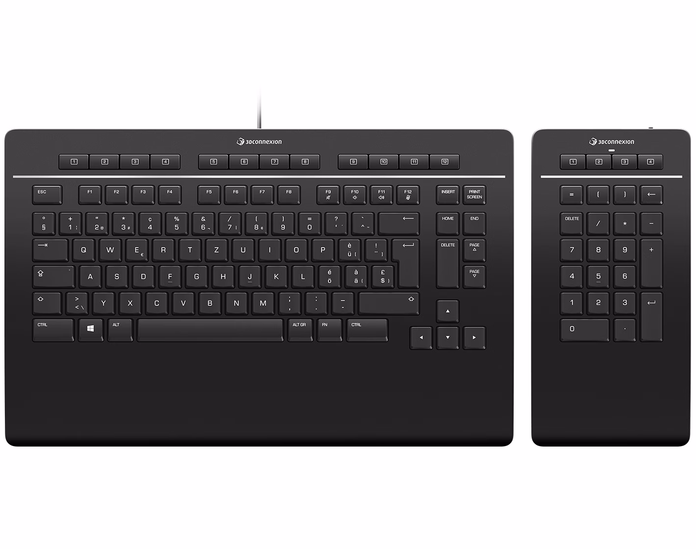 A keyboard with detached numpad engineered to help you create digital 3D models and professional designs. Its compact width enables a better position of your mouse or pen resulting in a more natural and comfortable posture. 3Dconnexion keys automatically provide access to app-specific commands you need most – saving time and keeping you focused.