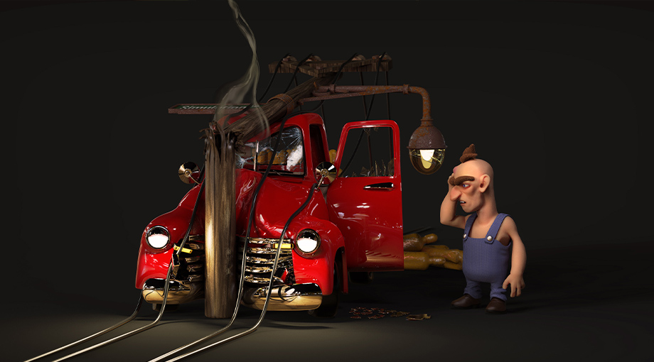 Truck collision scene utilizing many of the new features in ZBrush 2021, including dynamic simulation