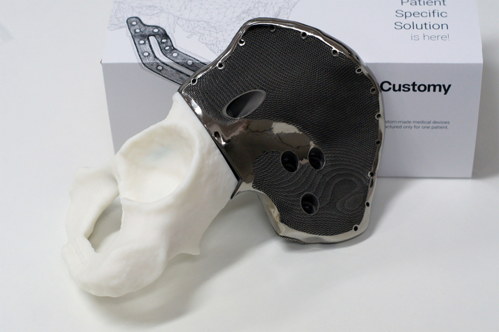 PS: My name is Paweł Skadłubowicz and I am the majority shareholder and Research and Development Manager in Smart Labs Sp. z o.o., which owns the Customy brand. Our company is involved in the creation of personalized solutions for cranio-maxillofacial, orthopaedic and reconstructive surgery. The solutions that we create are made for individual patients, and can be implants and surgical guides, or single-use tools for precise guidance of surgical instruments such as saws or drills during surgery on the patient. Our surgical guides allow a virtual surgery plan prepared together with the doctor to be transferred to the operating theatre. Implants and guides are used to restore the patient’s full functionality after cancer or extensive injuries, for example from road accidents. In the case of cancer, a patient could have a bone fragment missing, causing not only problems in their daily functioning, but also problems of aesthetic nature. At the moment there is no standard solution on the market which would allow the reconstruction of bone in cases like this. That’s where we come in.