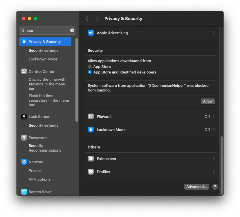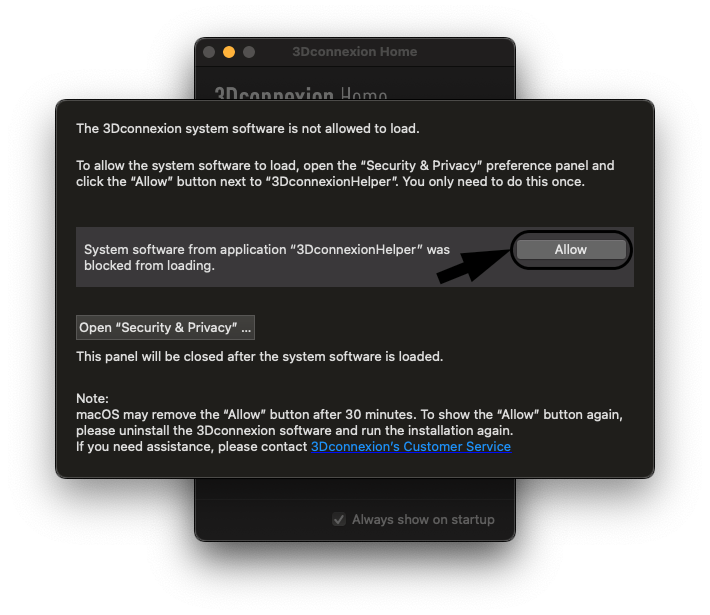 3. Scroll down to find the message: “System software from the application ‘3DconnexionHelper’ was blocked from loading.”